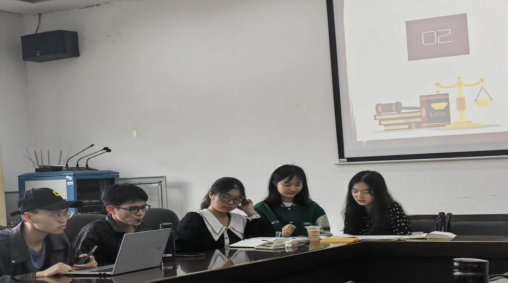 第五组同学就三个方面展开了分享:一是法律中调和矛盾综合观点的中庸智慧,二是善良违法的问题和个人正当利益的维护,三是法律的公正与自然正义。