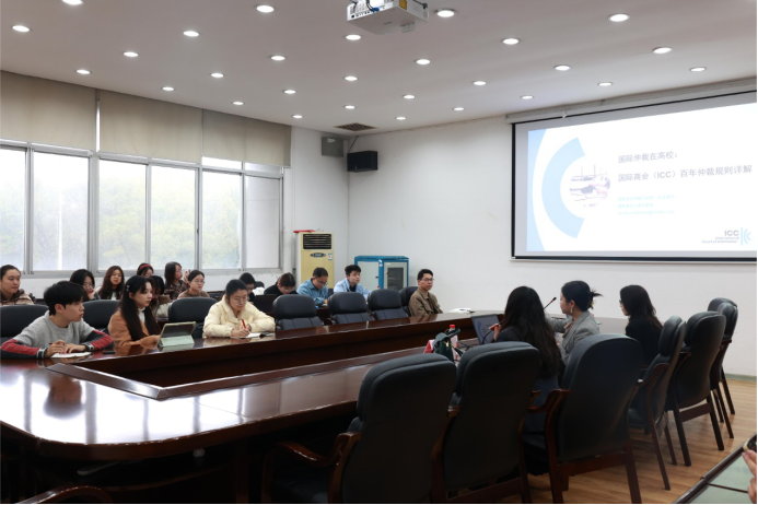 国际商会是1919年为规范国际商业活动而建立的国际组织,制定或参与制定了《国际贸易术语解释通则》、《纽约公约》、《巴黎协定》等国际条约和惯例。贺薇蓉女士主要从国际商会争议解决、国际商会国际仲裁院的机构及其发展历史、国际商会仲裁规则及调解规则、国际商会仲裁程序以及国际仲裁学习的推荐等几个方面介绍了国际商会仲裁的相关情况,期间,贺薇蓉女士通过提出“商事争议是否由国际商会仲裁院解决?”“国际仲裁发展成为国际通行的在解决争议的根本原因是什么?”两个问题引发同学们的思考,积极与同学们互动,循循善诱,让同学们真正了解国际仲裁。此外,贺薇蓉女士还鼓励同学们踊跃参加“贸仲杯”等国际模拟法庭比赛,积极争取国际商会国际仲裁院秘书处的实习机会。