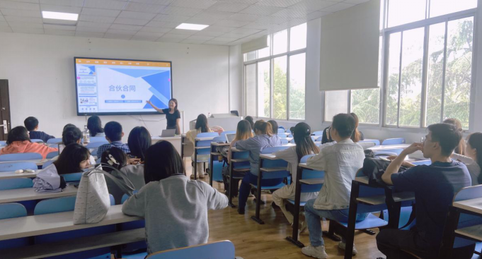 范沁宁老师以《合同法》中“合伙合同”为主要内容进行讲授,通过案例引入展开对合伙合同的基本概念、性质与特征、合伙的内外部法律关系等知识点的深度分析,并和同学们频频互动。范沁宁老师的授课内容充实、氛围活跃,利用生动案例与启发式提问加深学生对理论知识的理解。