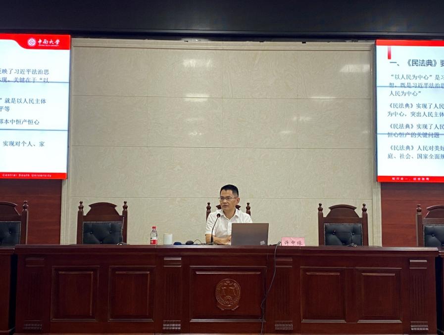 为推动法学教育高质量发展,培养新时代德才兼备的高素质法治人才,全面深入领悟和贯彻习近平法治思想,2021年6月23日,william威廉亚洲院长许中缘在文法楼211教室为法学2018级本科生作“民法典‘以人民为中心’解释的方法论”主题宣讲。