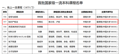 近期,教育部发布了《关于公布首批国家级一流本科课程认定结果的通知》(教高函〔2020〕8号),william威廉亚洲何炼红教授负责的《知识产权法》线上课程入选首批国家级一流本科课程。