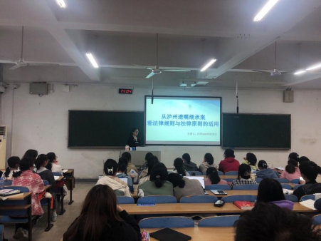 2017班的黎玉婷同学通过对“泸州遗嘱继承案”中案情及其中涉及的法律进行梳理,她认为其中主要涉及到两个冲突,一是法律原则与法律原则的冲突,表现为意思自治原则与公序良俗原则的冲突;二是法律原则与法律规则在适用上的冲突,表现为《继承法》中遗嘱继承的规则与公序良俗原则的冲突。同时,她通过“帕尔默遗产继承案”阐述了法律原则与法律规则在适用中的冲突,认为在司法裁判中应该保做到公平正义。