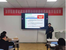 每位老师的汇报都各具特点,别出新意。张新平老师在讲授“环境保护的绿色原则”一课中,非常注重多元化的教学方法,将“绿色发展理念”融入到“环境保护”的课堂之中,强化了学生们的环境保护意识。黎娟老师在“法社会学中的质性研究访谈”一课中,对质性研究访谈的方法论意义作了展开,并注重培养学生培养学生尊重科学、尊重事实的精神,帮助学生形成较强的研究意识和学术意识,培养学生良好的与人沟通和团队协作能力,培养学生运用全面观、系统观看待和分析问题的能力。匡凯老师在“物权法”一课中,重视对学生法制观念的培养,从古至今以历史的角度帮助学生拓宽视角,深入了解我国民法典的物权法制度,从而加强学生公有财产和私有财产的认识。蒋清华老师通过向学生讲授“中国宪法历史”一课,巩固了宪法在学生心中的权威地位,宪法与国家前途、人民命运息息相关。……如果宪法受到漠视、削弱甚至破坏,人民权利和自由就无法保证,党和国家事业就会遭受挫折。这些从长期实践中得出的宝贵启示,必须倍加珍惜。贺东山老师通过设计“房地产法”一课,通过加强对十分珍惜、合理利用土地和切实保护耕地这一基本国策的理解和认同,进而提升全体学生的法治观念并树立起正确的政治理想和道德,为国家输送从事维护土地所有权、合理组织利用土地等相关行政管理活动的优秀人才,此外,还提倡和鼓励全体学生积极投入脱贫攻坚、乡村振兴和全面建设小康社会事业,培养能够坚定“四个自信”、坚定共产主义理想信念的全面发展的、对党和国家、社会主义事业忠诚可靠的建设者和接班人。梁小尹老师设计的“反倾销法”一课,则通过构建中国特色国际经济法学体系,充分印证了马克思主义原理的正确性并为马克思主义中国化又提供了范例:中国特色社会主义市场经济理论——社会主义与市场经济是人类社会不可或缺的价值追求。与此同时,每位老师也接受了评委们的提问,虚心听取评委们的建议,正如评委们所说的,课程思政的设计和实际授课要紧密结合才能体现“课程”与“思政”,不能硬搬教材,而是要依据教材、消化教材,注重挖掘思政元素并注意不同学科之间的融合衔接。