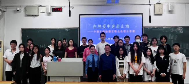 (图二:周程检察官、唐东楚教授与同学们的合影)