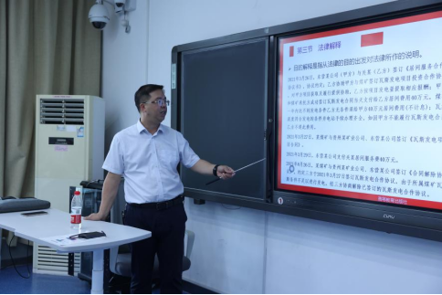 会议第一环节为教学观摩,该环节以教学示范的形式传承经验,夯实教学根基。法学理论研究所组织新进教师现场观摩彭中礼教授主讲的《法理学进阶》课程。彭中礼教授以“目的解释”为核心,通过经典案例剖析、实务场景模拟,深入浅出地展现法学理论教学与实务能力培养的融合路径。课程突出“以学生为中心”的互动设计,引导学生在思辨中掌握法律解释的逻辑框架与方法论工具,为新进教师提供了“理论扎根实践”的教学范式。