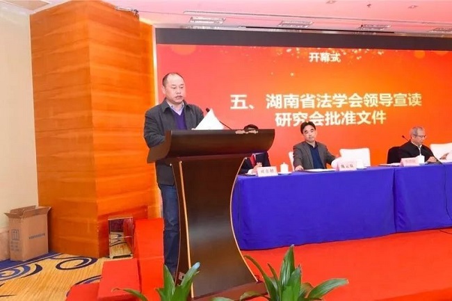 湖南省法学会夏鸽翔主任宣读研究会批准文件