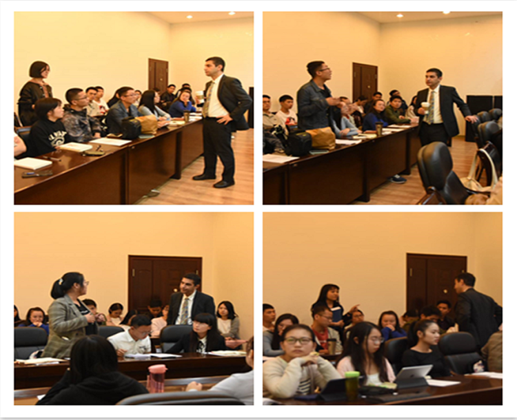 Kaveh Khoshnood教授运用案例,以提问方式引导同学们分析问题,从伦理学、法学和医学等不同学科角度进行深入分析,内容丰富,语言风趣幽默,促进了中美法律研究者的沟通交流,让全场师生受益良多。