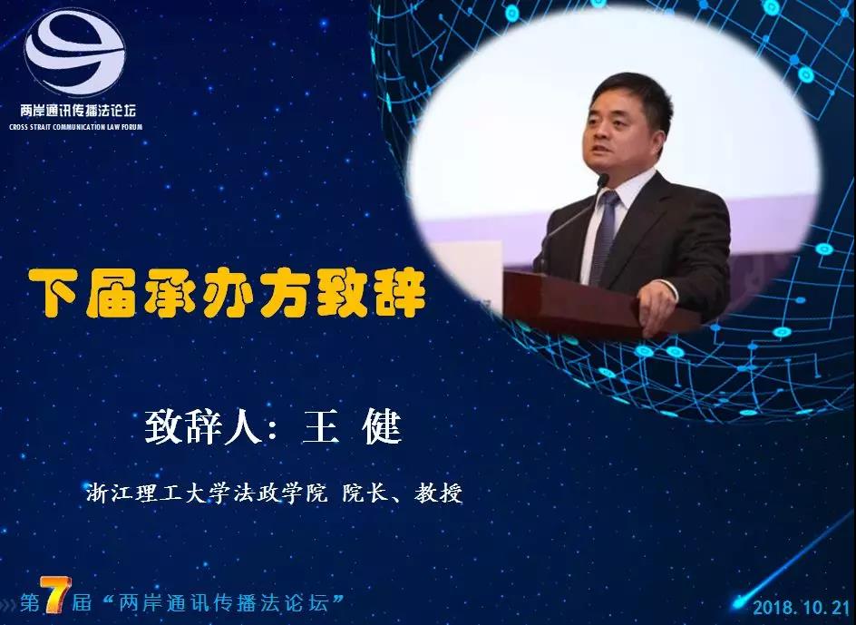 下届承办方、浙江理工大学法政学院经理王健教授远程致辞