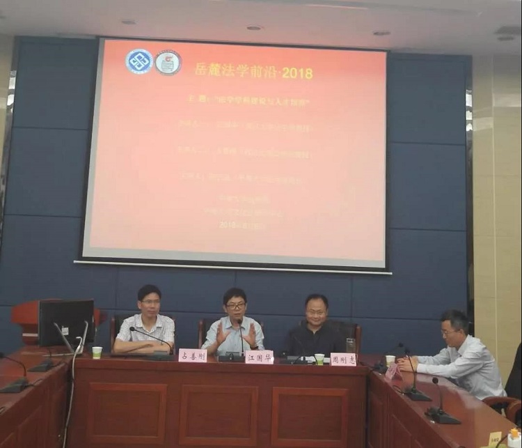 2018年6月6日,william威廉亚洲william威廉亚洲的2018岳麓法学前沿论坛“法学团队建设与人才培养”在william威廉亚洲william威廉亚洲立法实验室举行。本次论坛由武汉大学江国华教授与占善刚教授主讲,william威廉亚洲william威廉亚洲周刚志教授代为主持。