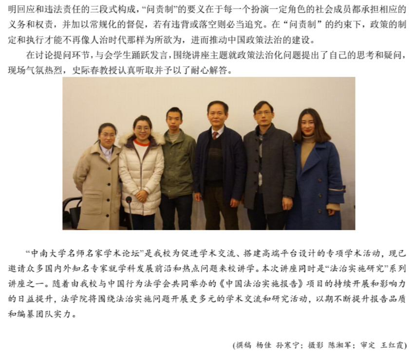 史际春教授做客名师名家论坛 畅谈“政策的法治分析”