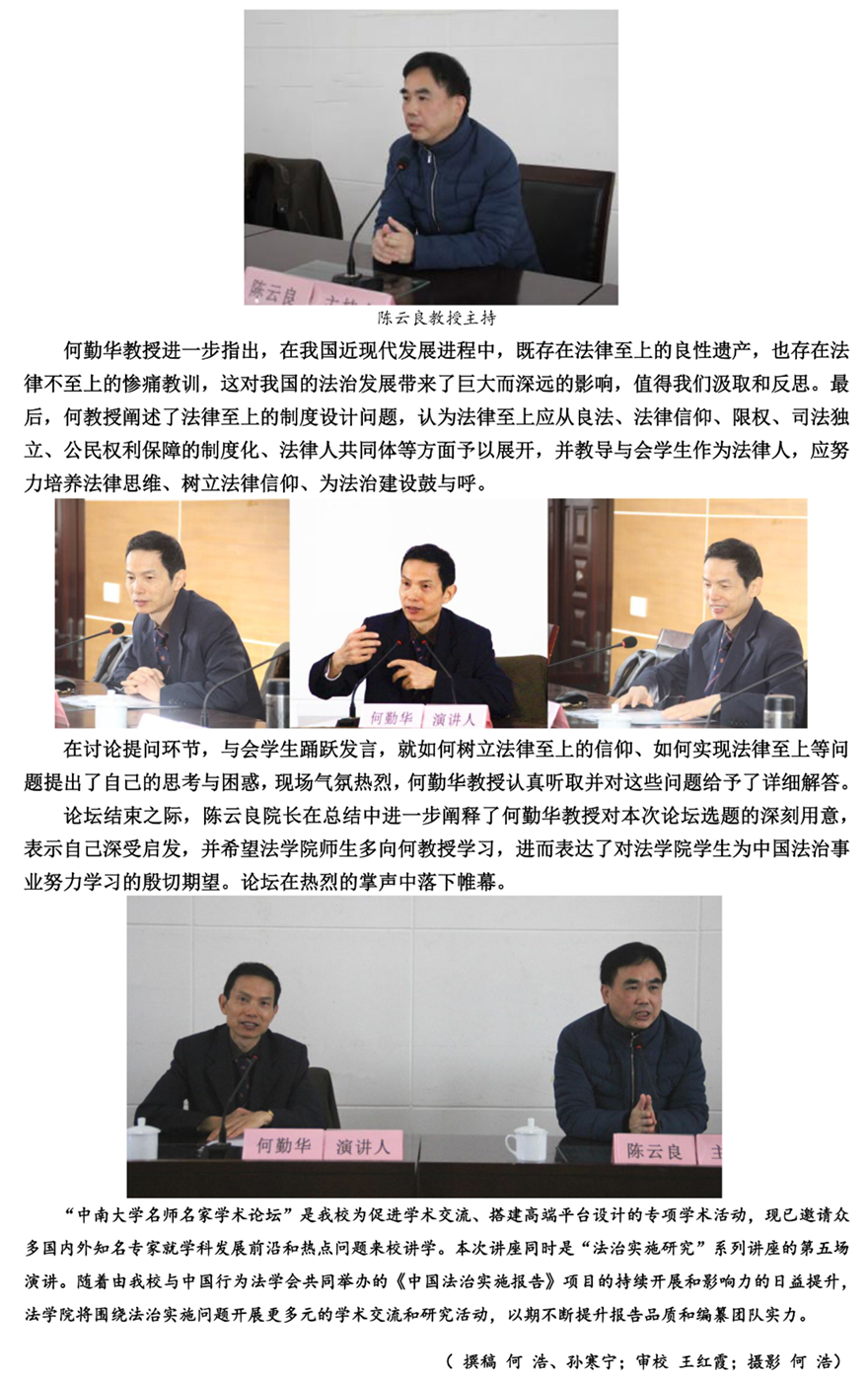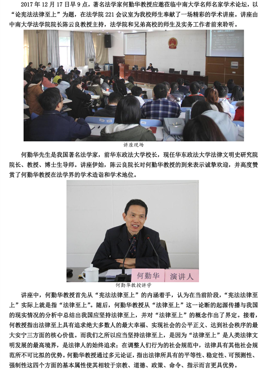 著名法学家何勤华教授做客中南 精解“宪法法律至上”