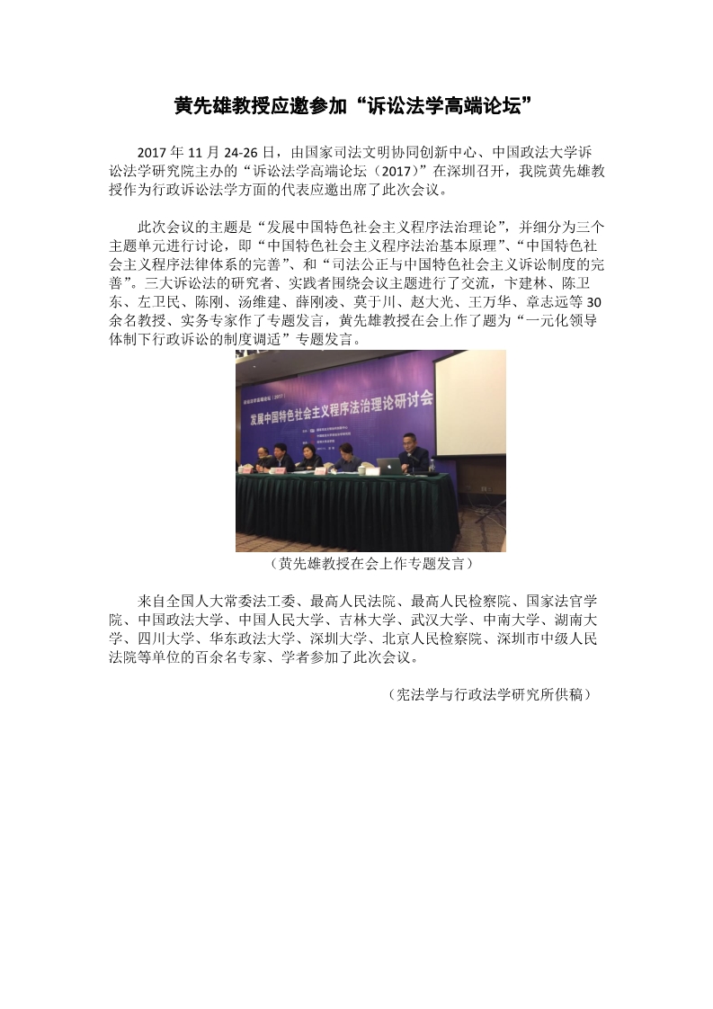 黄先雄教授应邀参加“诉讼法学高端论坛”