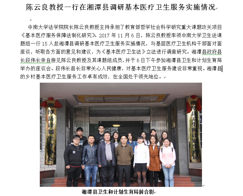 陈云良教授一行在湘潭县调研基本医疗卫生服务实施情况