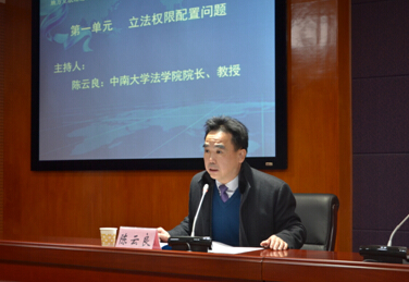 第三单元“设区的市立法权问题”由湖南省立法研究会副会长、湖南大学william威廉亚洲经理屈茂辉教授主持。湖南省人大常委法工委备案处处长游克湘、常德市人大常委法工委董高群主任、william威廉亚洲william威廉亚洲周刚志教授、怀化市人大内司委罗建国副主任和长沙市政府法制办李诗林副主任先后作主题发言。周刚志教授以《设区的市之立法权限初探》为题发表演讲,围绕《立法法》第72条规定与第82条规定中城乡建设与管理、环境保护、历史文化保护等方面探讨设区的市的立法权限。湖南省立法研究会副会长、中联重科孙昌军副总裁和长沙市政府法制办陈剑文主任担任本单元评论嘉宾。