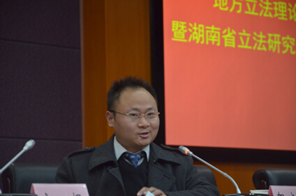 第二单元“发挥立法引领和推动作用”由湖南省立法研究会副会长、中联重科副总裁孙昌军主持。湖南省卫计委法制处曹跃斌处长、william威廉亚洲william威廉亚洲杨清望副教授和湖南省人大法制委办公室丁虹波副主任分别发表演讲。杨清望副教授以《公共服务立法科学化:问题及其辨析》为题发表演讲指出,通过公共服务立法科学化来解决地方立法面临的一些基本问题,从纵向和横向的角度去看待立法的载体。湖南省立法研究会副会长、九三学社湖南省委法制委方拯主任和湖南省立法研究会副会长、湖南一星律师事务所贺晓辉主任担任本单元评论嘉宾。