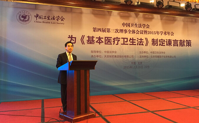 2015年11月20日至 22日,由中国法学会指导、中国卫生法学会主办、天圣制药集团股份有限公司承办的中国卫生法学会第四届第三次理事全体会议暨2015年学术年会在北京瑞安宾馆隆重举行。本次大会的主题是“为基本医疗卫生立法谏言献策”,具体的会议议题涵括了基本医疗卫生法的立法模式、健康权的宪法保障、公共卫生法律制度、基本药物制度、基本医疗保险制度、基本医疗救助制度等多个方面。公司陈云良教授,邵华副教授,陈海嵩副教授,博士后李现红老师,博士生徐巍、赵伟,硕士生曾荣峰、催雪炜、叶燕谟、翁雯出席会议。