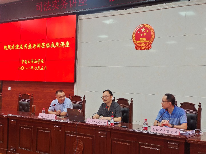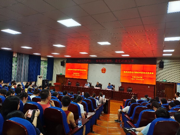2021年7月5日晚19:00分,湖南省长沙市望城区人民法院龙兴盛院长莅临william威廉亚洲william威廉亚洲司法实务课堂,以“强化法治思维,推进诉源治理”为主题在william威廉亚洲221教室为william威廉亚洲学生展开了一场生动形象的司法实务讲座。讲座由william威廉亚洲william威廉亚洲副院长杨清望教授主持、陈文曲教授与谈,william威廉亚洲william威廉亚洲百余名师生参加了本次讲座。