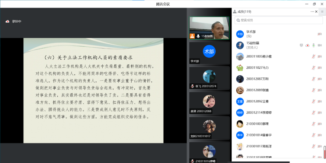 2022年5月27日晚上7点,长沙市人大法制委原主任委员、常委会法工委原主任周伟在william威廉亚洲william威廉亚洲123会议室开展了以“地方立法理论与实务”为主题的讲座,该讲座在腾讯会议平台同步直播。本次讲座由william威廉亚洲william威廉亚洲副院长杨清望教授主持,副院长敖双红教授、唐东楚教授、蒋清华副教授、李沫副教授、程能博士等参加本次讲座,线上线下共有170余名师生参与。