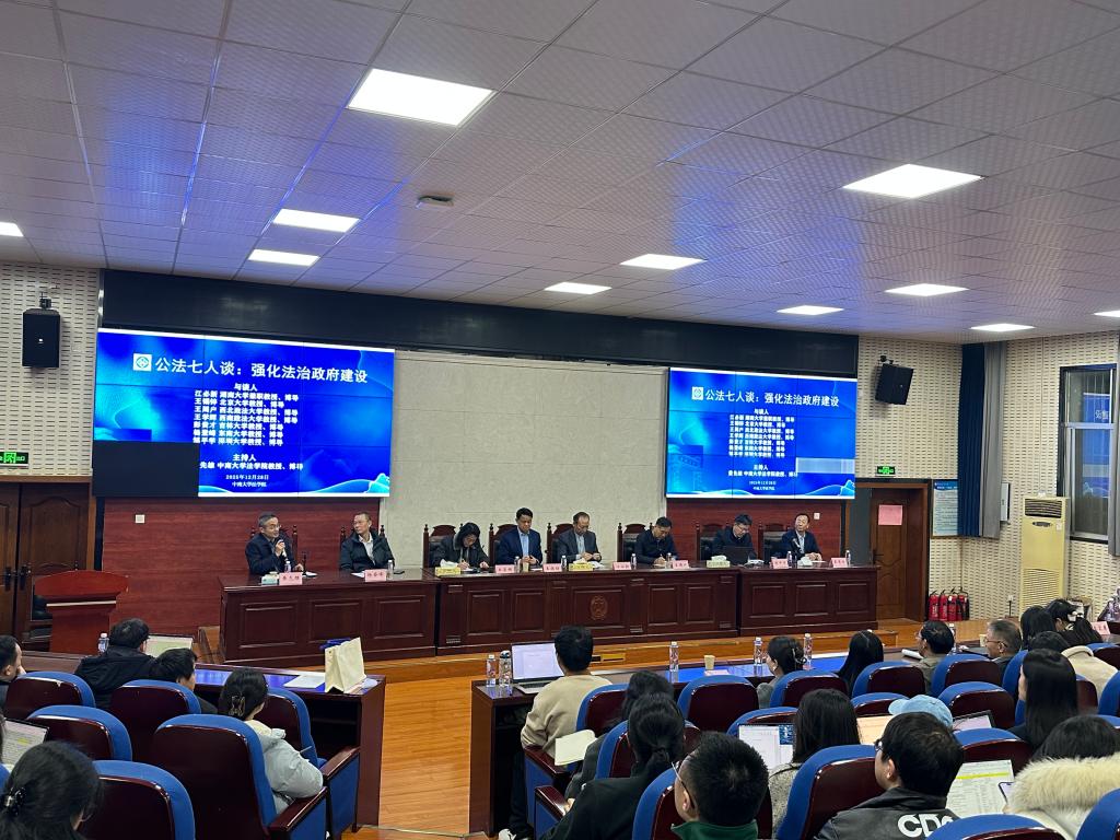 在三个多小时的研讨中,七位公法学者从多方位、多角度就如何强化法治政府建设阐述了各自的见解。其中,北京大学王锡锌教授从数字法治政府建设角度发表了主旨演讲,指出行政国向数字国的转向意味着国家治理的基础逻辑从传统科层权威转向数据驱动与算法决策。这不仅是工具革新,更是治理范式、组织形态与权力运行方式的深刻重塑,亟需新的法律原则与制度框架予以回应和规范。西北政法大学王周户教授围绕“强化法治政府建设”主题,从“是什么”“为什么”“怎么办”三个方面,阐述了法治政府建设的本质内涵、价值根基与实践路径等。西南政法大学王学辉教授以“中国式法治政府的构建”为核心,从理论形态、观念革新与实践自主性三个关键维度展开论述:首先探讨契合中华民族精神特质的法治政府应然样态;其次阐释中国式法治政府建设所需完成的观念更新;最后说明我国法治政府建设如何超越西方法治范式、走出一条自主性道路。吉林大学彭贵才教授从行政纠纷处理的实践样态出发,结合当下行政争议纠纷解决的实践情况,探讨了其对法治政府建设提出的必然要求与现实启示。东南大学杨登峰教授系统阐述了行政法中的职权法定原则及其与法律保留原则的区分和联系,剖析了其对法治政府建设的规范意义与制度要求。深圳大学邹平学教授围绕粤港澳大湾区法治实践,系统阐述了大湾区法治政府建设的战略意义、实践难点与制度协同路径,为跨法域治理提供了理论参照与实践启示。湖南大学江必新教授系统剖析了当前法治政府建设面临的制度供给、职能转变、决策理性、执法规范、争议化解、数字治理等十大难点,为“强化法治政府建设”提供了兼具问题导向与体系思维的实践路径与改革方向。