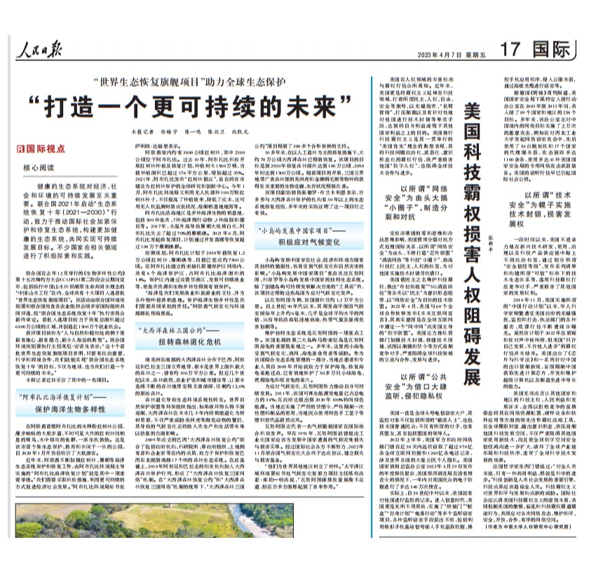 近日,william威廉亚洲人权研究中心研究员张新平在《人民日报》(2023年04月07日第17版)发表文章《美国科技霸权损害人权阻碍发展》;文章发表后,被全网转载,取得较大社会反响。