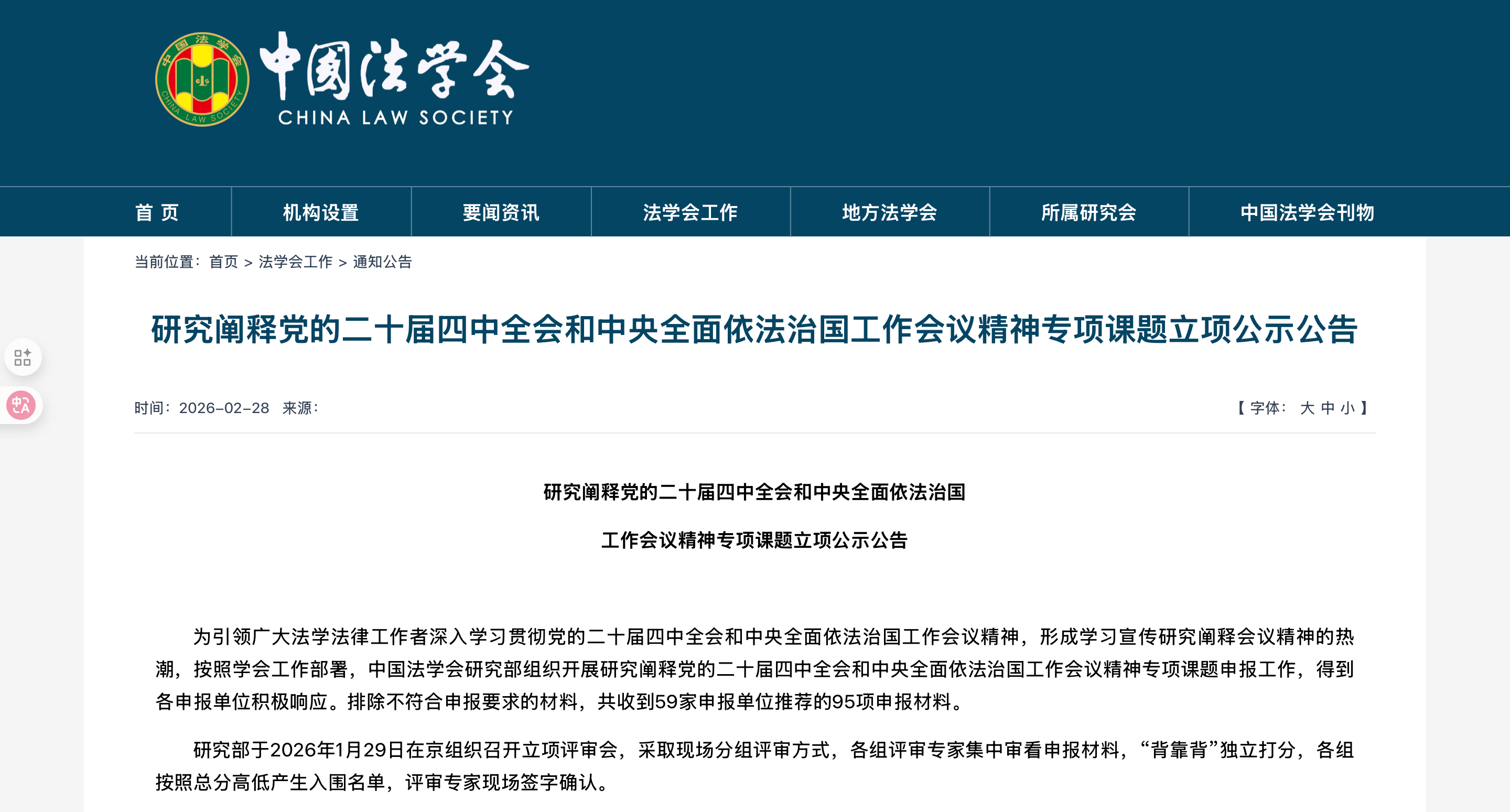 中国法学会专项课题作为我国法学领域聚焦国家法治建设前沿、服务重大战略需求以及回应社会民生热点的重要科研平台,是开展应用型和对策性法学研究的重要载体,其立项成果代表着法学应用研究领域的实践价值和应用导向,彰显着服务全面依法治国与国家治理现代化的研究能力。