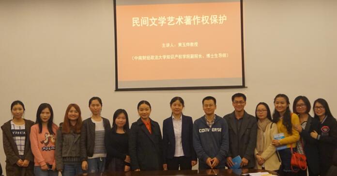 在开场介绍中,何炼红教授指出,黄玉烨教授是国内民间文学艺术法律保护问题的知名学者,既是理论的研究者,也是立法的参与者。此次讲座包含其十数年的研究经验,能为在座的学生提供一手的研究资料。