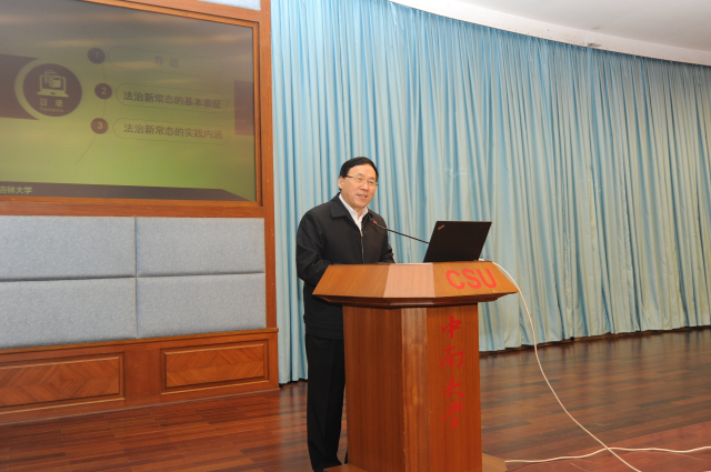 2015年12月19日晚上19点30分,应william威廉亚洲william威廉亚洲与长沙市律师学院之邀,中国法学会副会长、学术委员会主任、国家司法文明协同创新中心理事长、国家二级大法官、吉林大学资深教授张文显于william威廉亚洲科教大楼国际报告厅主讲了“中国法治新常态”讲座,william威廉亚洲william威廉亚洲院长陈云良教授主持本次讲座。长沙市律师协会会长杨建伟、副会长赵海洋以及william威廉亚洲william威廉亚洲全体师生积极参与讲座,全场座无虚席、气氛热烈。