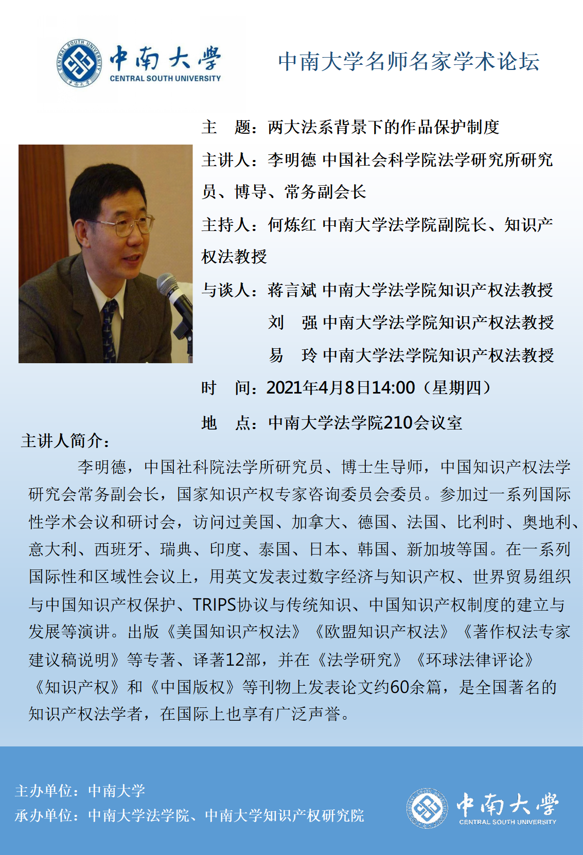 主讲人:李明德 中国社会科学院法学研究所研究员、博导、常务副会长
