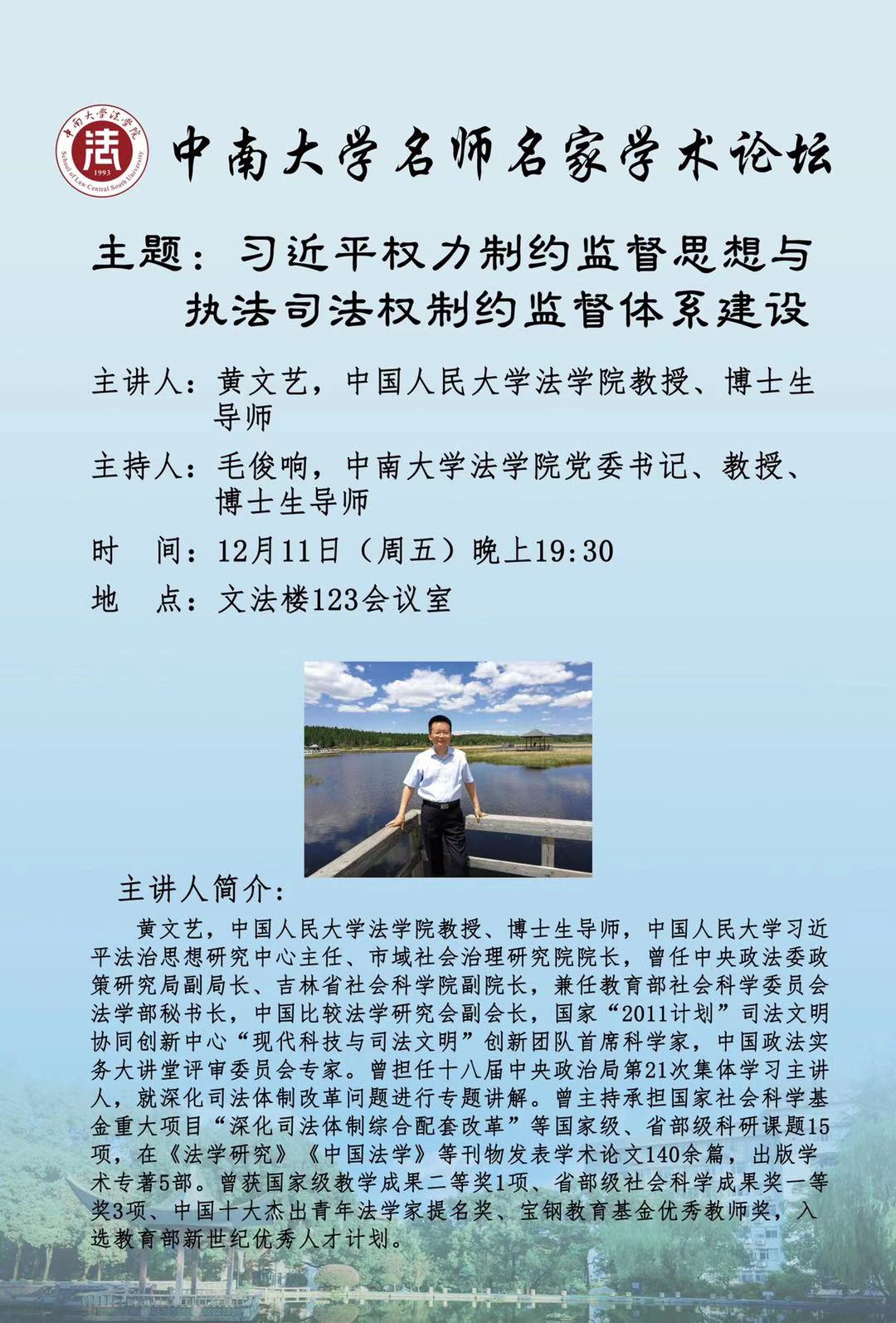 【讲座预告】黄文艺:习近平权利制约监督实现与执法司法权制约监督体系建设
