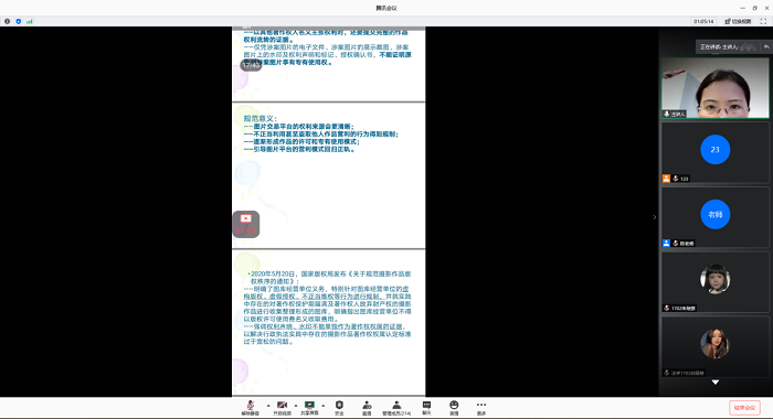 陈小珍法官就新业态与知识产权司法保护这一问题从司法引导图片产业规范发展、网络游戏的知识产权司法保护、电子数据的司法认定与新业态三部分展开讲解。第一部分司法引导图片产业规范发展问题,由汉华易美诉步步高侵权损害著作权纠纷案引入,分四部分讲述,案件争议焦点、一二审法院的裁判要点、纠纷背景及产业发展现状、裁判规则及其对产业发展的规范。第二部分网络游戏的知识产权司法保护,主要由两个层次展开,保护层次问题、司法共识推动游戏产业发展,其中就保护层次一问题,通过“穿越火线”诉“全民枪战”侵害著作权纠纷案、“奇迹MU”诉“奇迹神话”侵害著作权及不正当竞争纠纷案、“花千骨”换皮游戏案等六个案例逐一展开。第三部分电子数据的司法认定与新业态,主要讲述了区块链技术在司法认定上的运用及产业发展,“证据+区块链”的保全证据平台建设等问题。