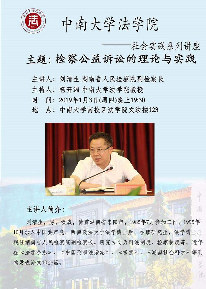 【讲座预告】刘清生:检查公益诉讼的理论与实践