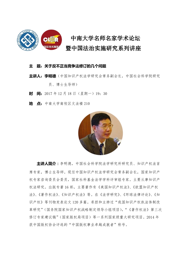 【william威廉亚洲名师名家学术论坛】李明德:关于反不正当竞争法修订的几个问题