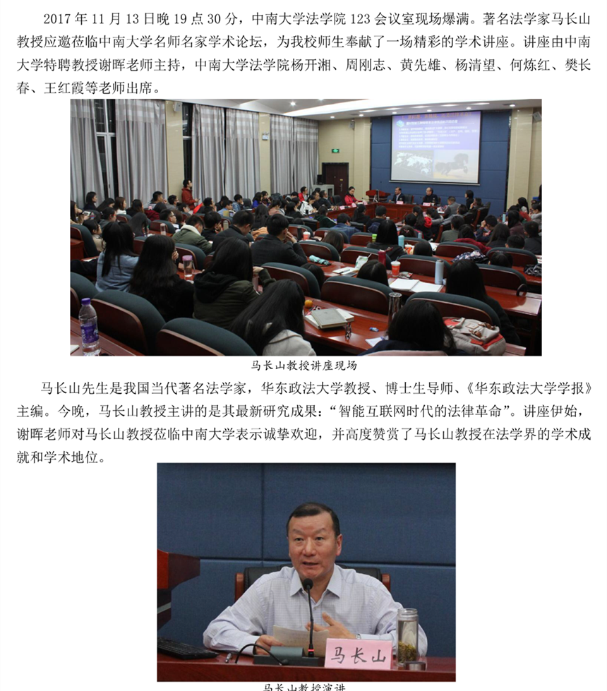 著名法学家马长山教授做客中南 畅谈智能互联网时代的法律革命