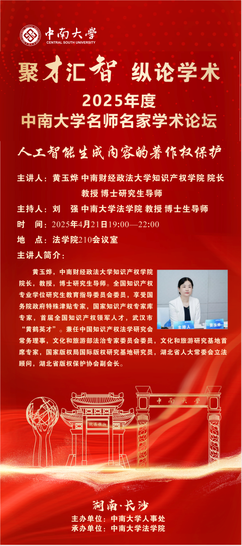 【讲座预告】黄玉烨:人工智能生成内容的著作权保护
