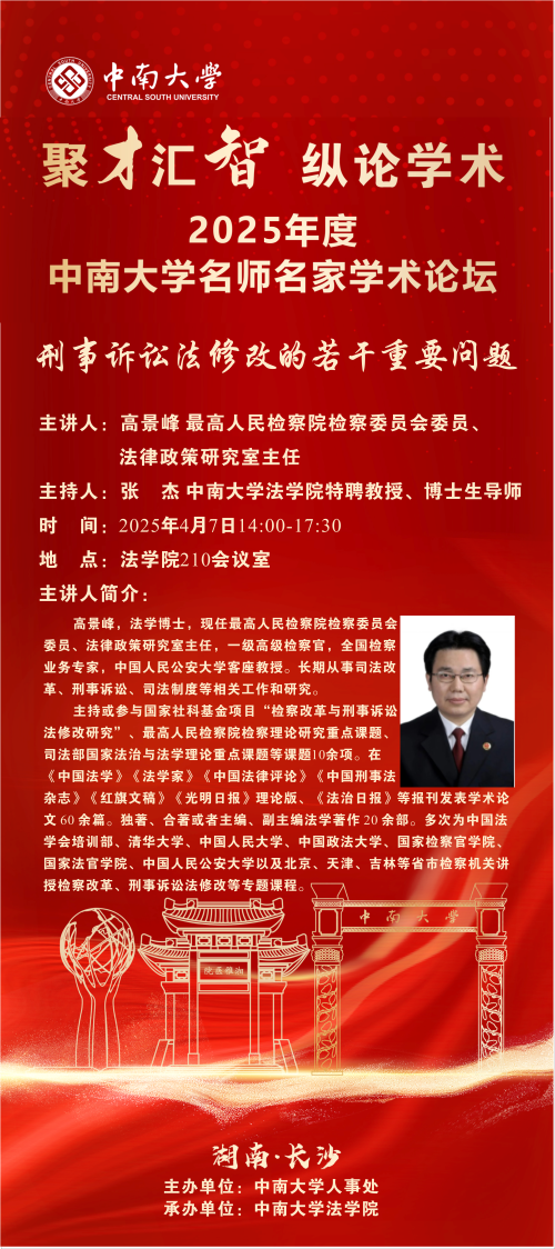 【讲座预告】高景峰:刑事诉讼法修改的若干重要问题