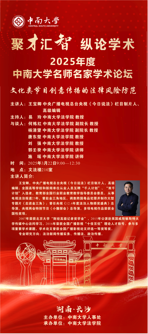 【讲座预告】王宝卿:文化类节目创意传播的法律风险防范