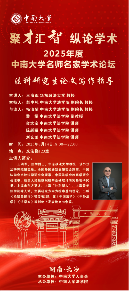【讲座预告】王海军:法科研究生论文写作指导
