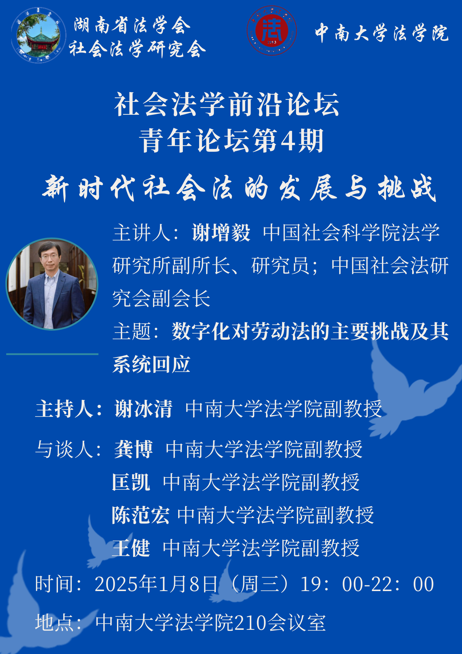 【讲座预告】社会法学前沿论坛青年论坛第4期:新时代社会法的发展与挑战