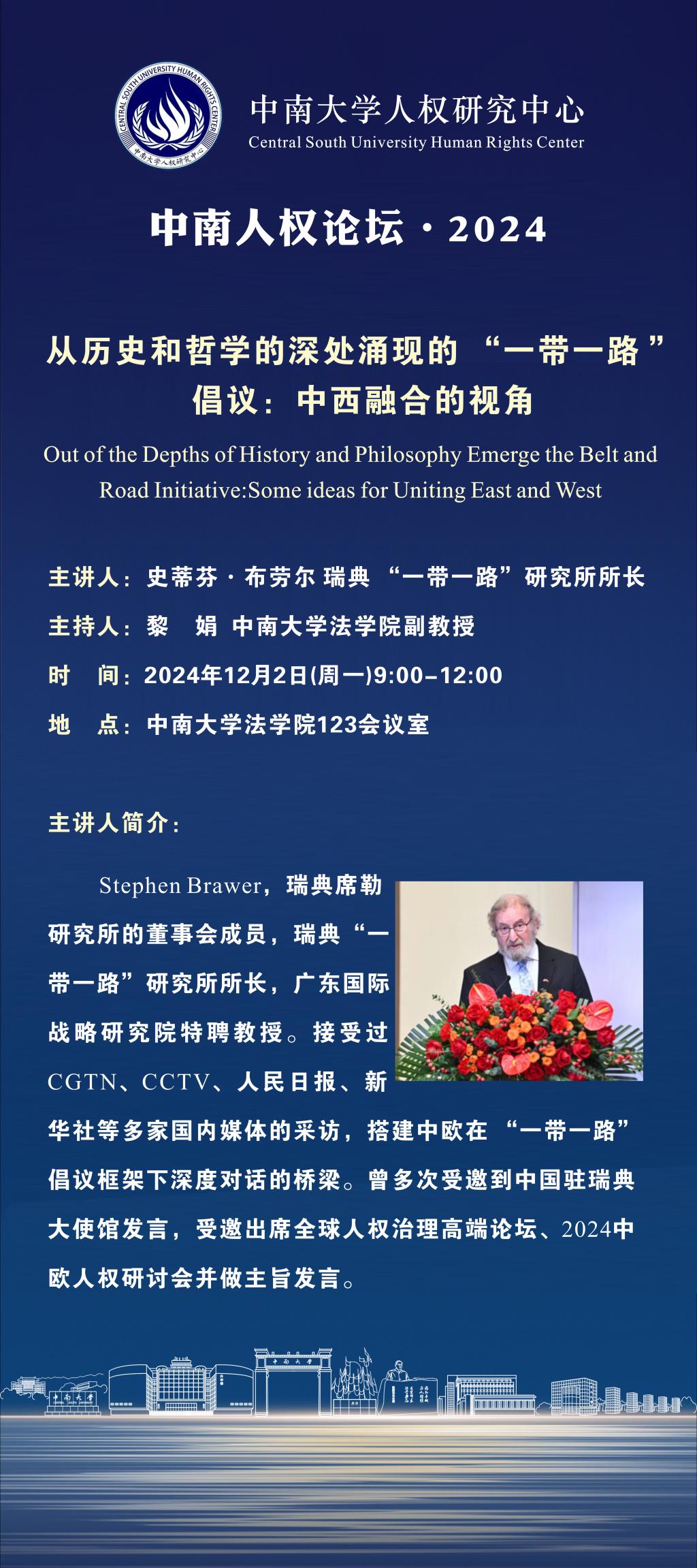【讲座预告】史蒂芬.布劳尔:从历史和哲学的深处涌现的“一带一路”倡议:中西融合的视角