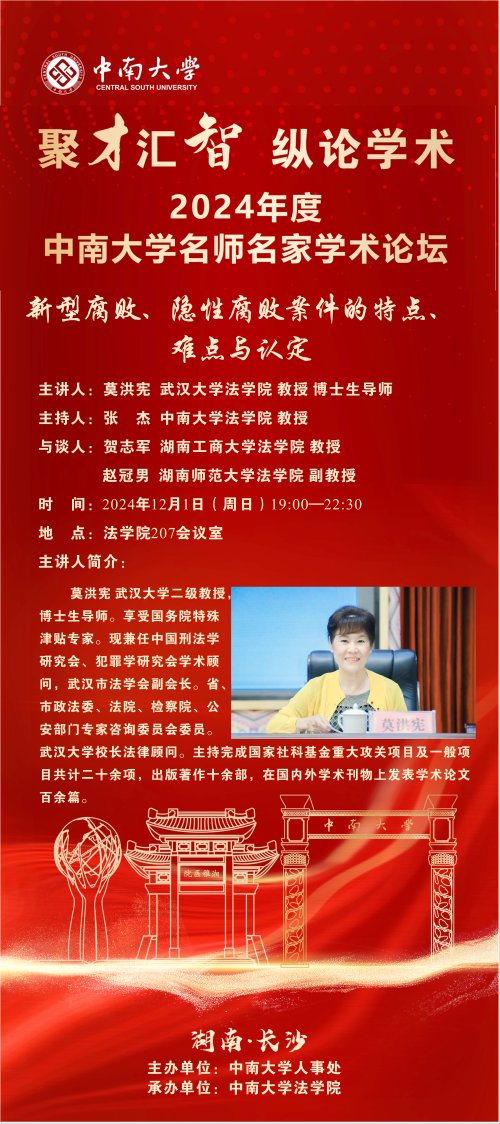 【讲座预告】莫洪宪:新型腐败、隐性腐败案件的特点、难点与认定