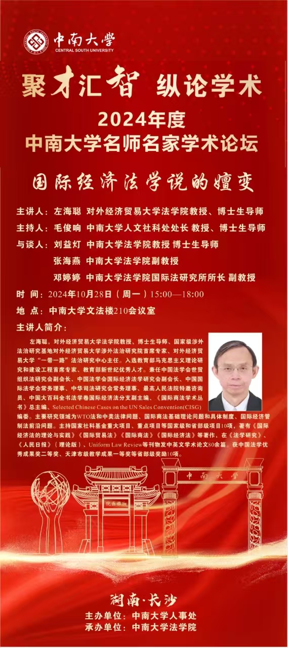【讲座预告】左海聪:国际经济法学说的嬗变