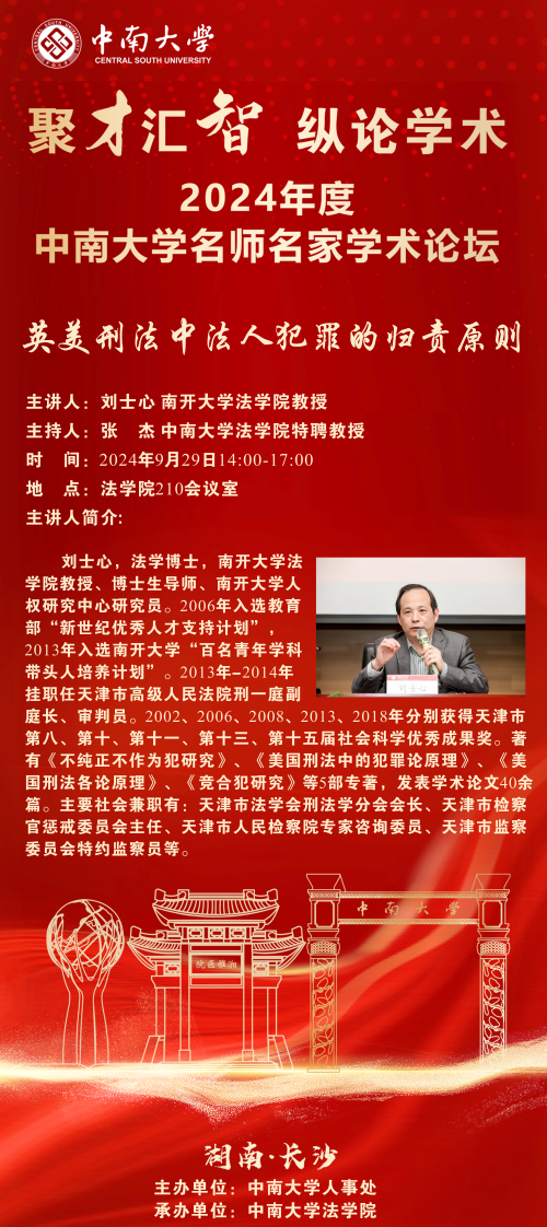 【讲座预告】刘士心:英美刑法中法人犯罪的归责原则
