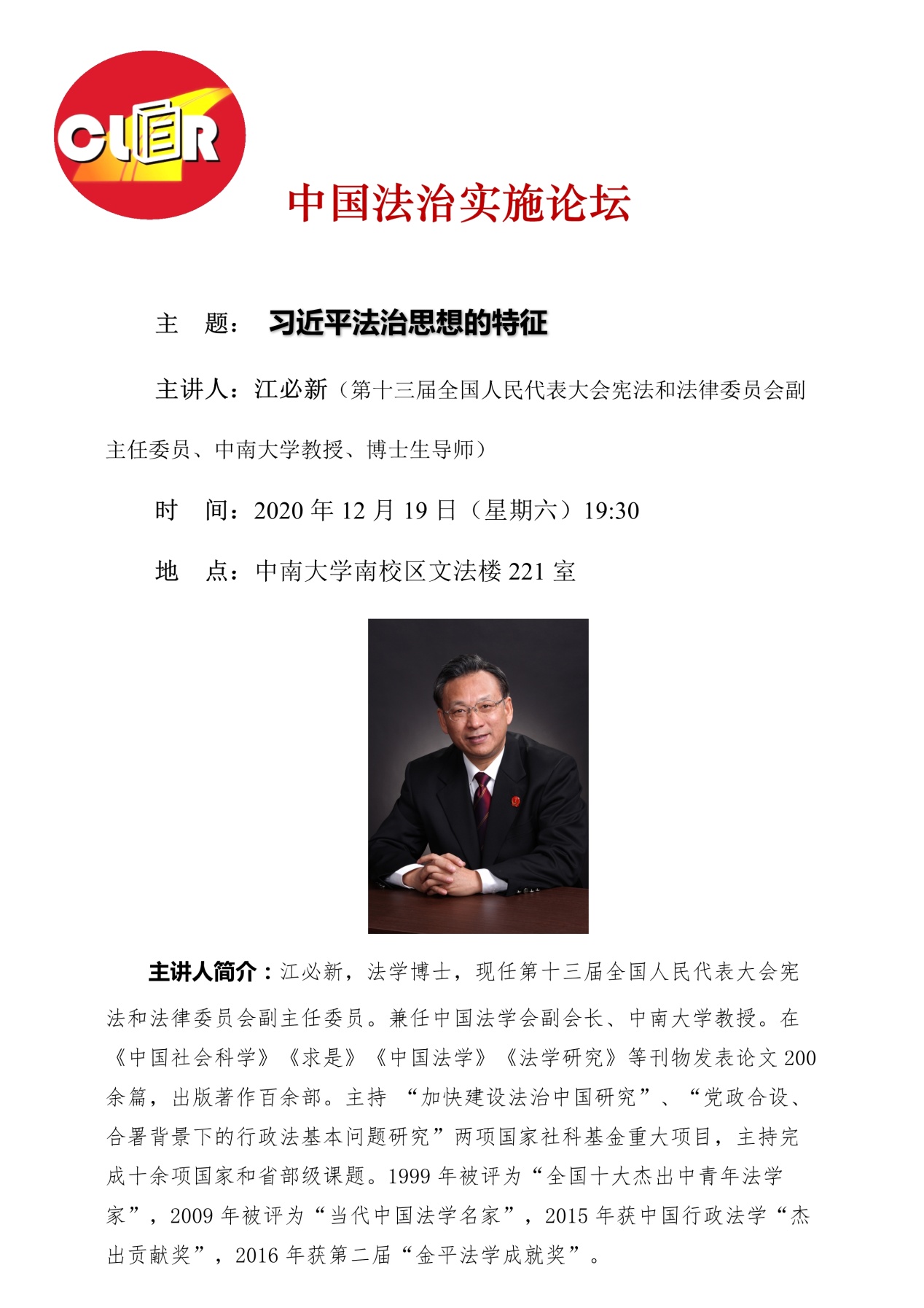 【讲座通知】江必新:习近平法治思想的特征