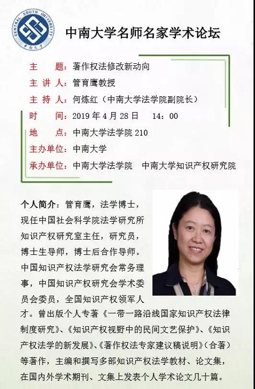 主讲:管育鹰(中国社会科学院法学研究所知识产权研究室主任、教授、博士生导师)