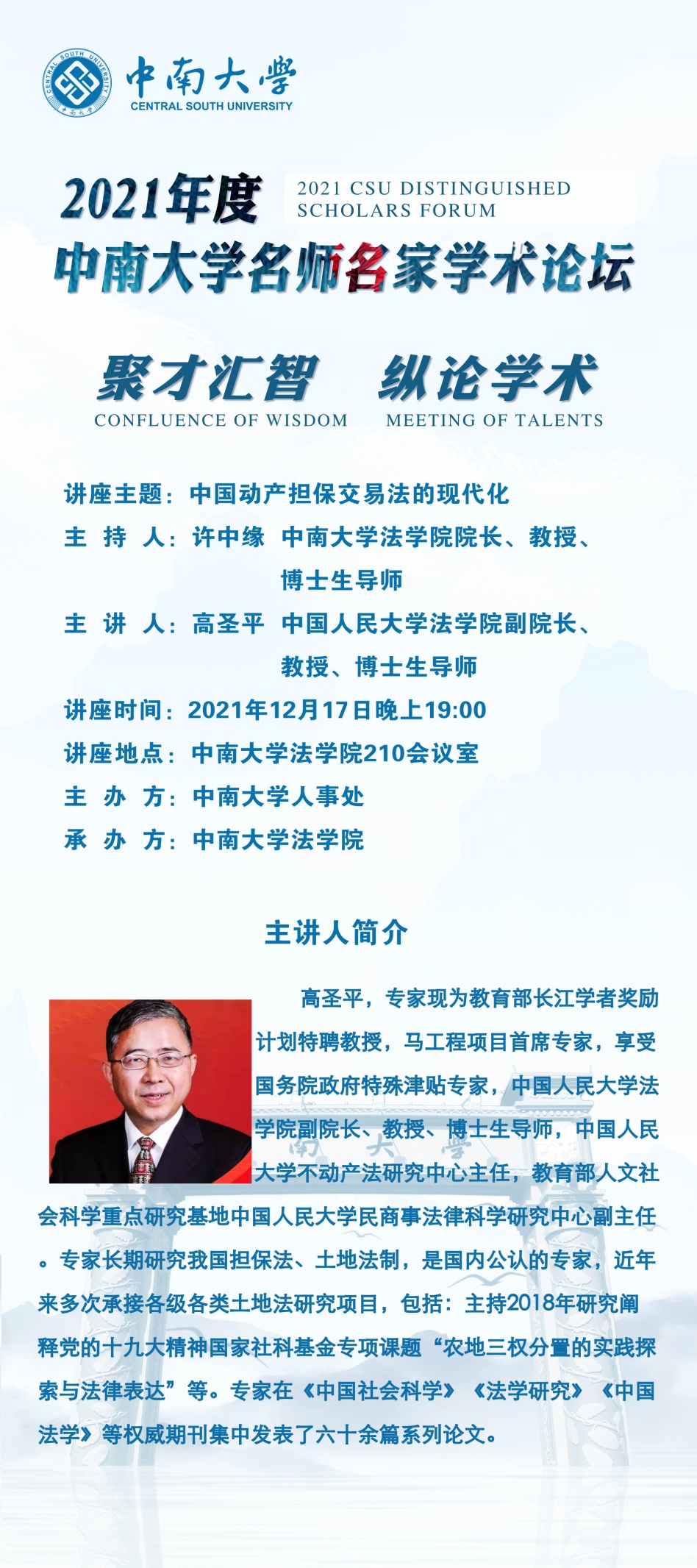 【名师名家讲座预告】高圣平:中国动产交易法的现代化