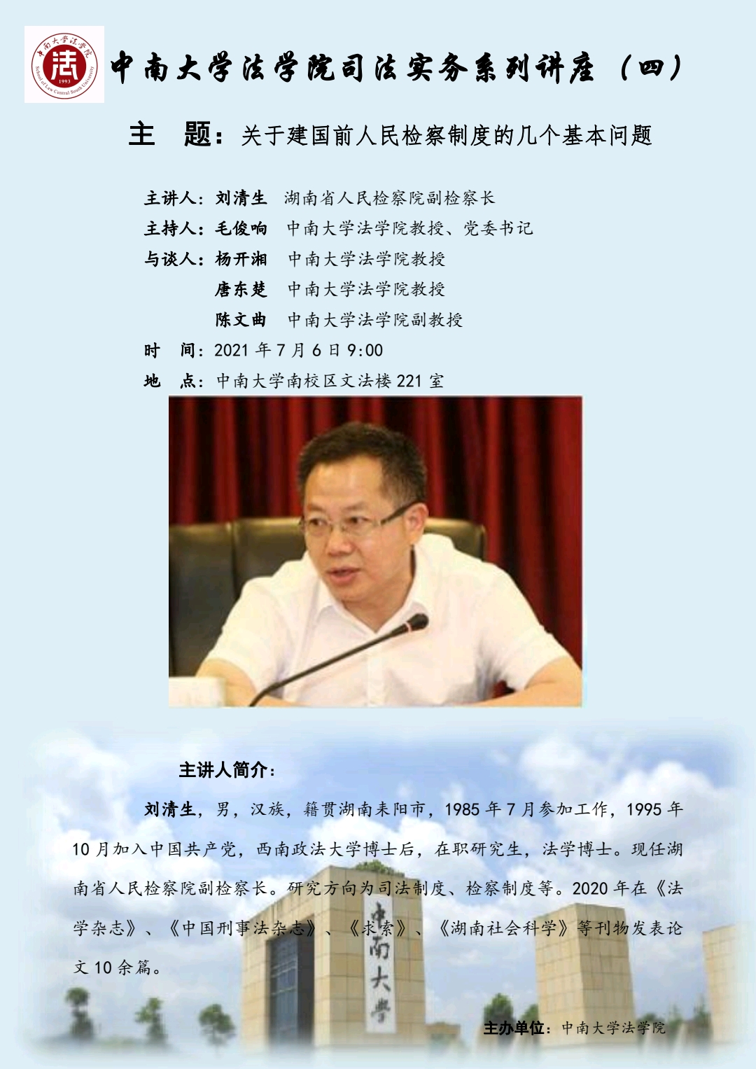 【讲座预告】刘清生:关于建国前人民检察制度的几个基本问题