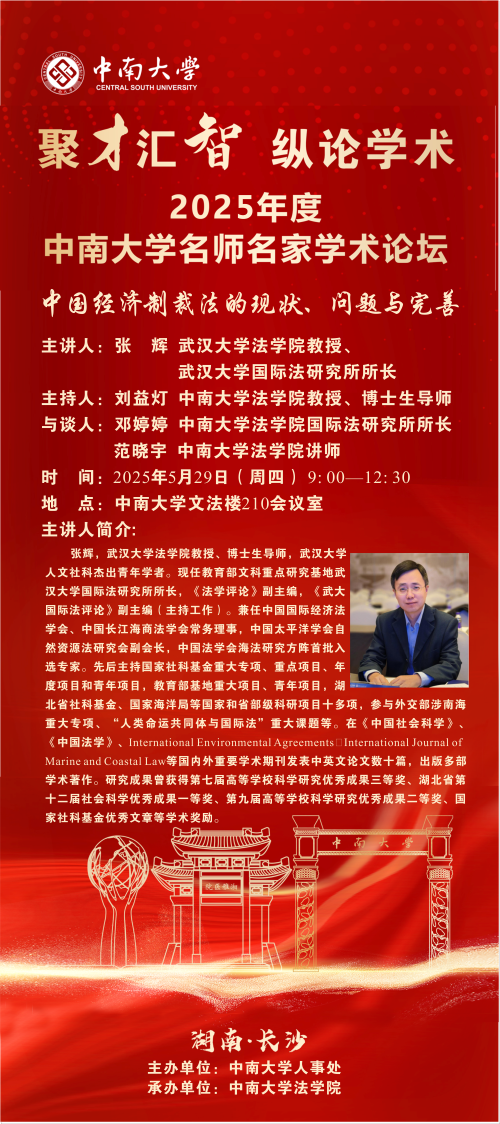 【讲座预告】张辉:中国经济制裁法的现状、问题与完善