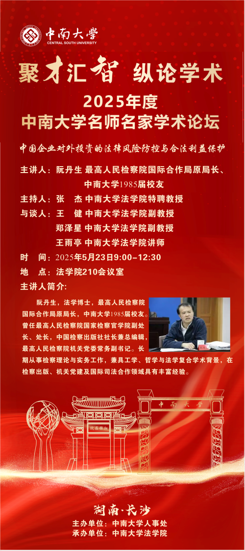 【讲座预告】阮丹生:中国企业对外投资的法律风险防控与合法利益保护