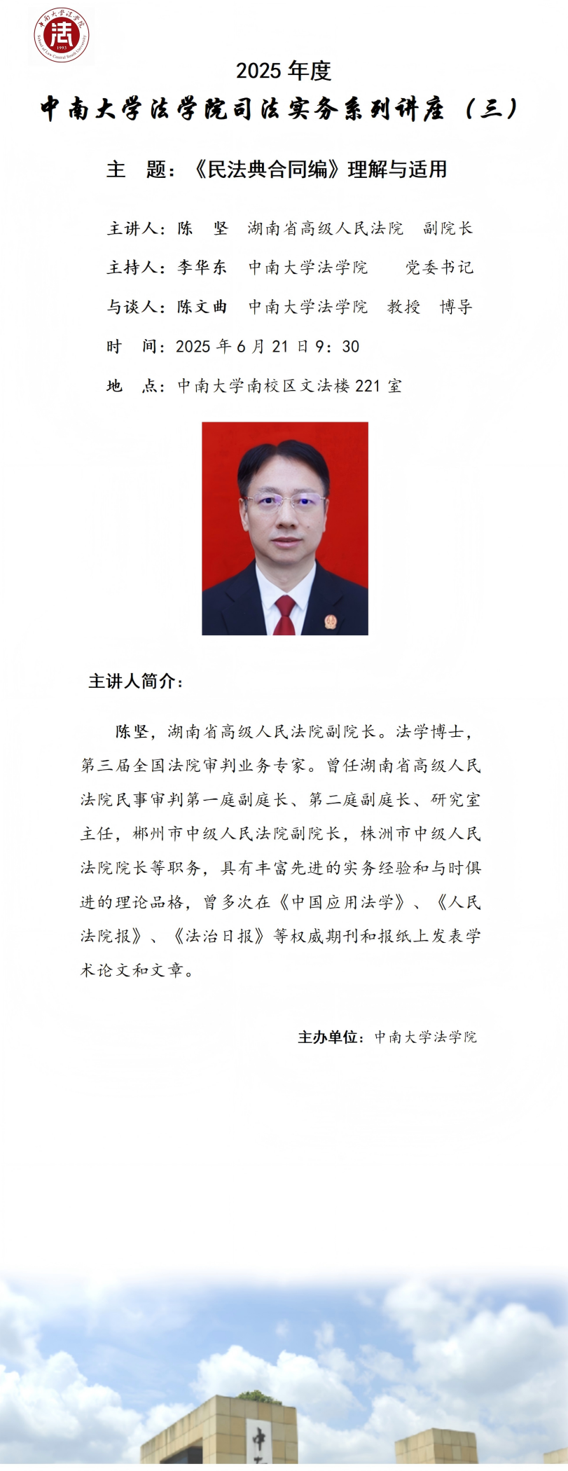 【讲座预告】司法实务系列讲座(三):陈坚:《民法典合同编》理解与适用