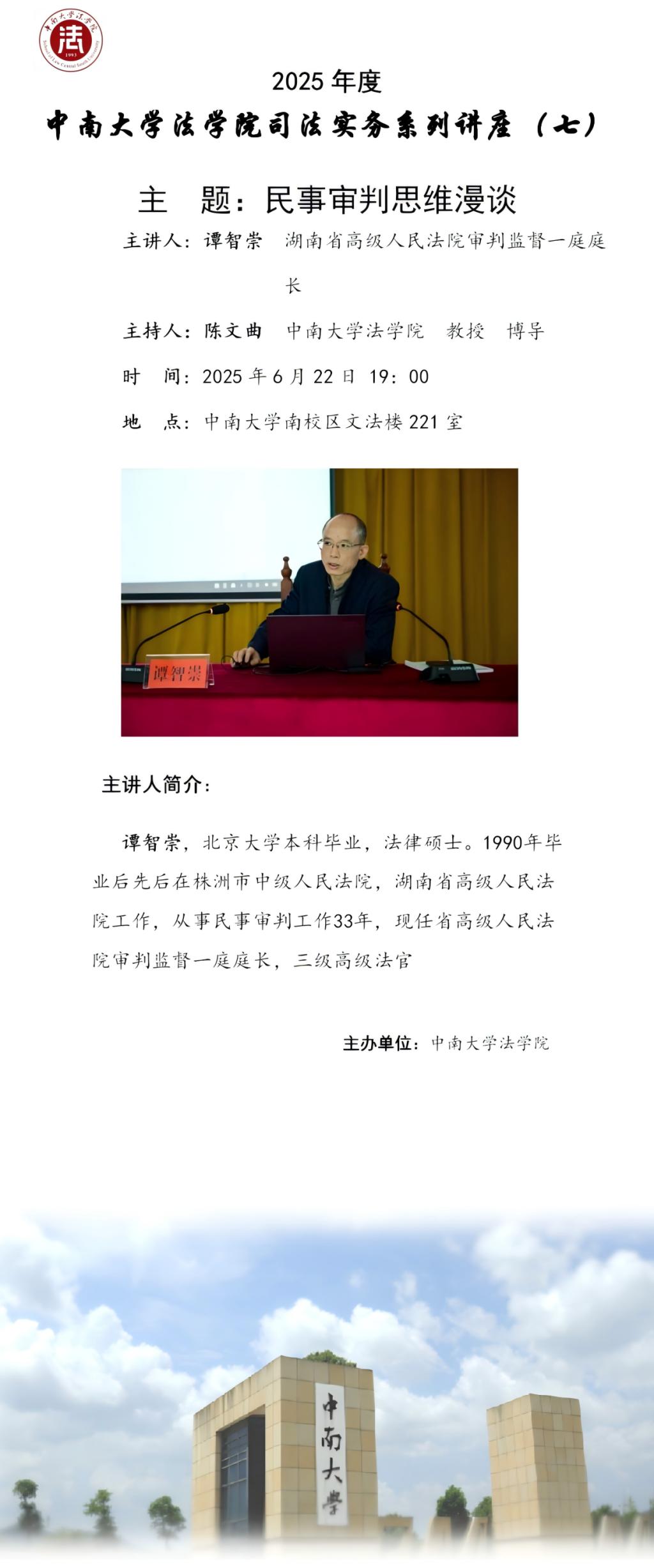 【讲座预告】司法实务系列讲座(七):谭智崇:民事审判思维漫谈